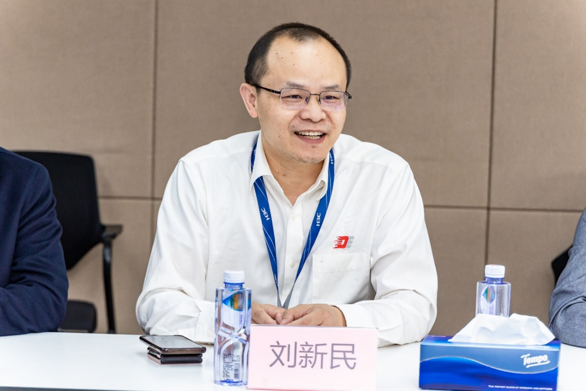 在随后的座谈会上,刘新民对周董事长一行的到访表示热烈欢迎,详细介绍了公司在数字化领域深耕多年的实践经验和全栈式的数字化能力,表示希望与公司进一步加强沟通,推进产教融合、优势互补,促进双方的互利共赢。